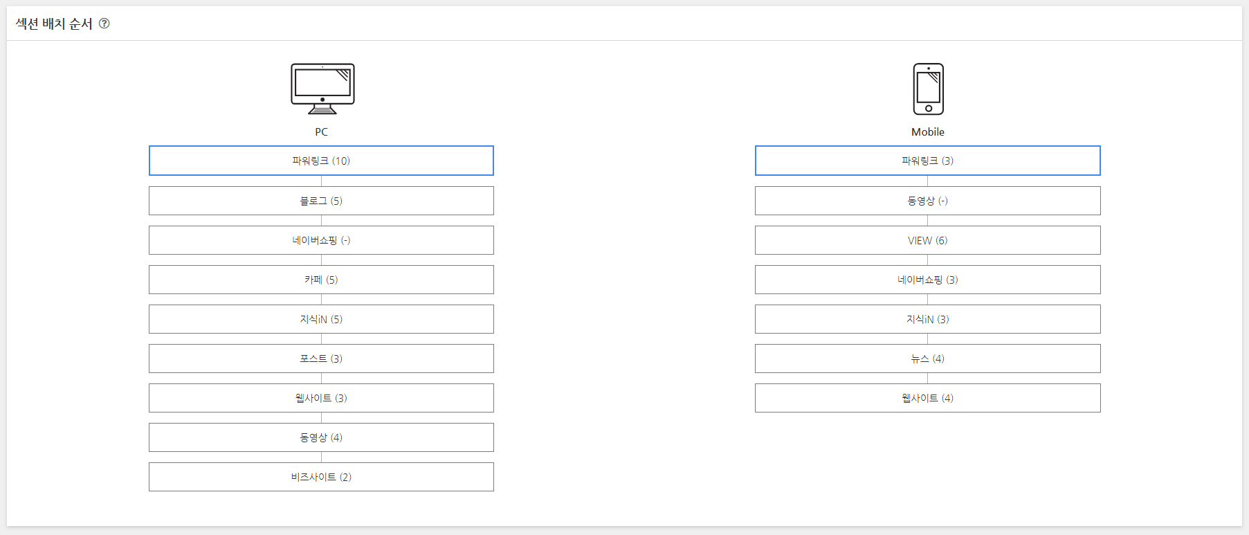 그리고 네이버에 섹션 배치 순서