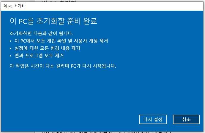 윈도우 10이 설치된 상태에서 초기화를 한 이유는