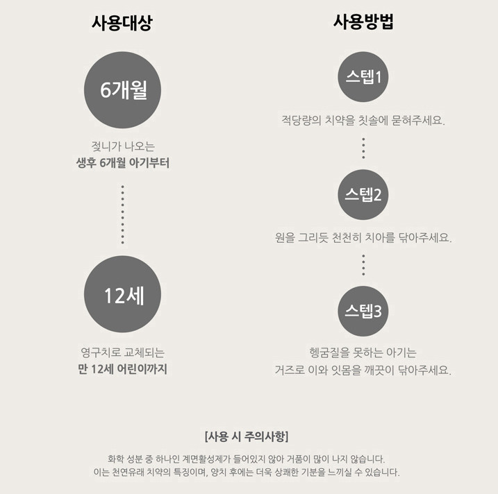 어른 치약과 다르게 천연유래으 펜넬 오일 함유로 향 또한 거부감이 적어 좋았어요
