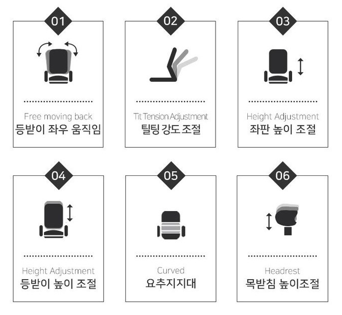 등받이 목부분 조절도 가능하니 신체에 맞혀 조정하면 좋을 거 같아요