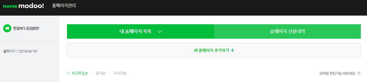 새 홈페이지 추가 +