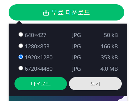이미지 사이즈도 1920x1280 사이즈까지는 로그인 없이 다운로드가 가능해요