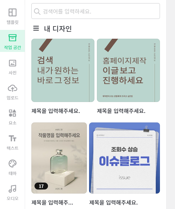 작업공간에 자주 사용하는 디자인을 저장해 두면