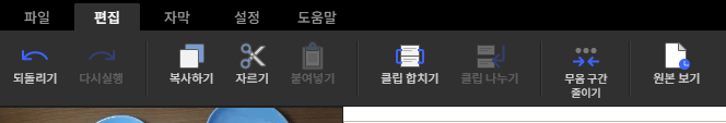 편집 기능을 보면 복사하기, 자르기, 붙여 넣기, 클립 합치기, 클립 나누기 등.. 있고요