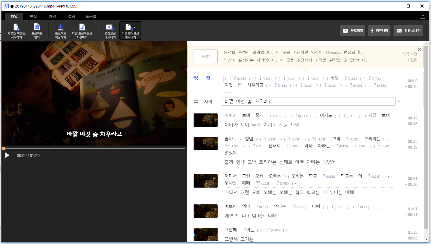 편집기로 사용하기는 다소 아쉬운 점은 있으나 음성을 자막으로 만들 때 유용하게 사용할 수 있을 거 같아요