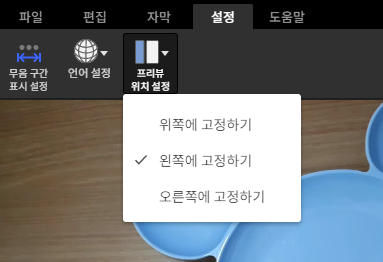 설정 부분에는 프리뷰 위치를 설정할 수 있네요~~