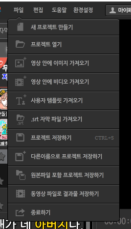 저는 새영상 파일로 시작하기를 눌러 영상을 하나 불러왔어요~~