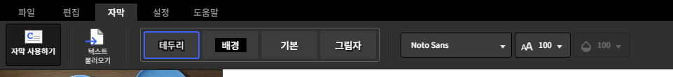자막 텝을 보면 자막 테두리, 배경, 기본, 그림자 효과