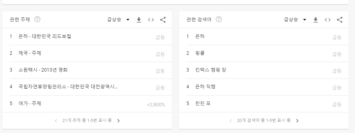 관련 검색어는 인기, 급 상스 2개로 확인이 가능하네요~