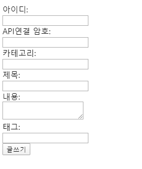 네이버 블로그 포스팅에 필요한 정보를 html form 에 입력할 수 있도록 간단하게 코딩했어요